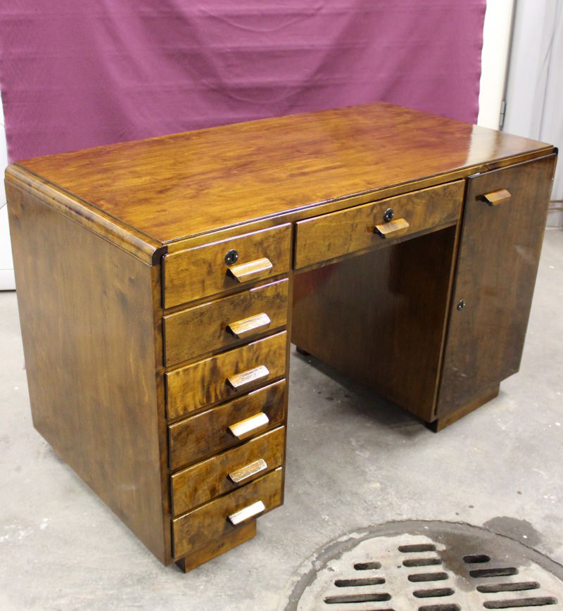 Vanhan 50-luvun kirjoituspöydän kunnotuksessa selvittiin alkuperäisen lakka- ja petsipinnan huolellisella puhdistamisella ja hionnalla. Tämän jälkeen tein tarvittavat viilukorjaukset ja laatikoiden pohjavanereiden vaihdot tarpeen mukaan. Petsaus vaalea pähkinä vesipetsillä.Pintaan asiakas halusi kiiltävän Helo-lakan.