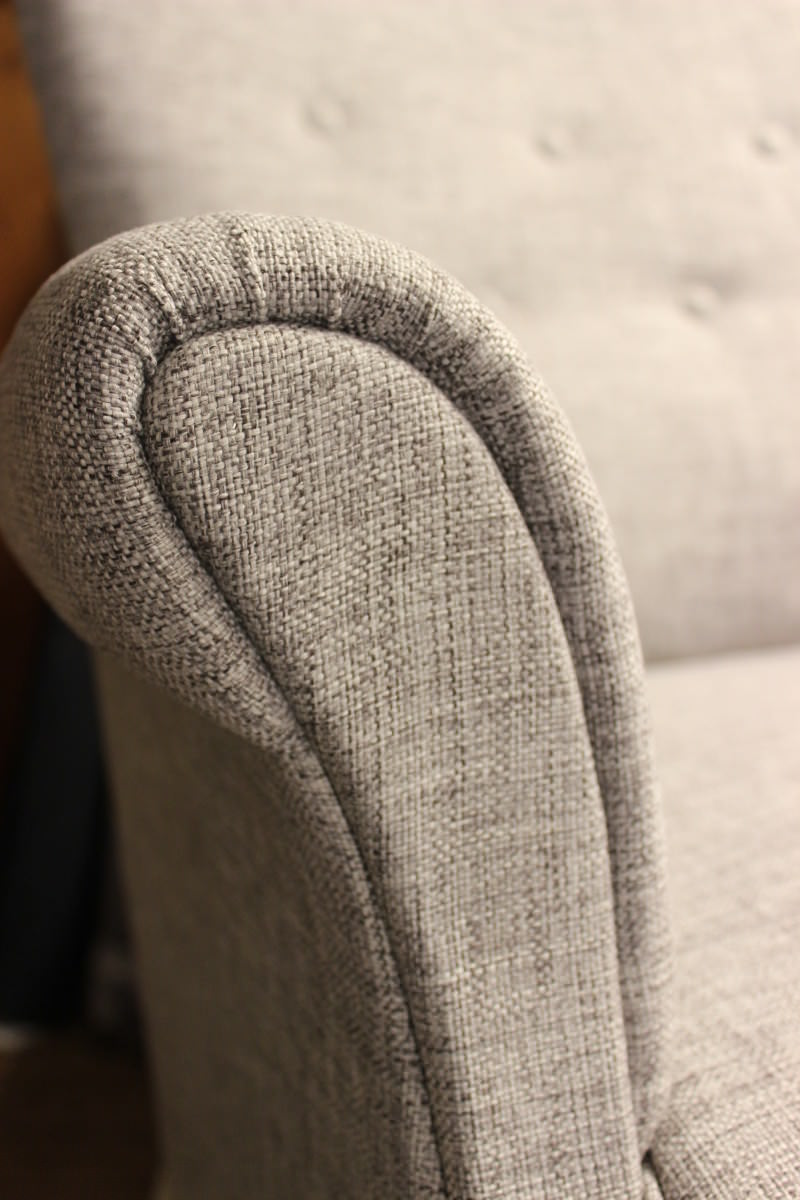 Nojatuolien verhoilu Anu Yleinen 24.8.2014Nantes-kangas, nojatuolin verhoilu, verhoilu Nojatuolit tulivat uudelleen verhoiltavaksi 14 vuoden jälkeen. Tällä välin jousituksen sidonnat ja toppaukset istuinosissa olivat tulleet tiensä päähän. Siispä ne täytyi uusia. Verhoilukankaana Orient occidentin Nantes vaalean harmaana.