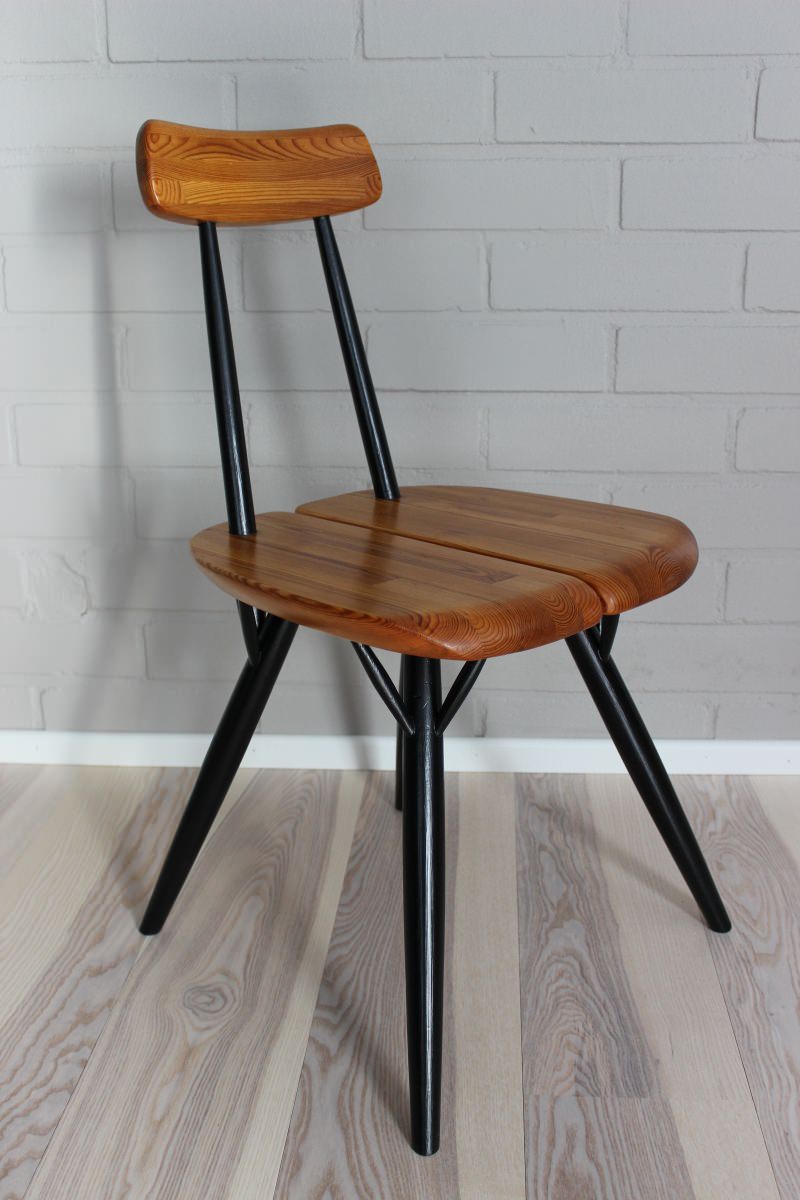Ilmari Tapiovaaran sunnitteleman Pirkka-tuolin korjaus ja kunnostus. Omistaja oli pelastanut kyseisen tuolin roskalavalta ja toi sen kunnostettavaksi. Tuolin toinen takajalka piti uusia ja pintakäsitellä koko tuoli. Maaliksi laitoin Otex-pohjamaalin ja pintaan puolikiiltävän Futura-maalin mustana. Istuinosaan Osmocolorin puuvaha värittömänä.
